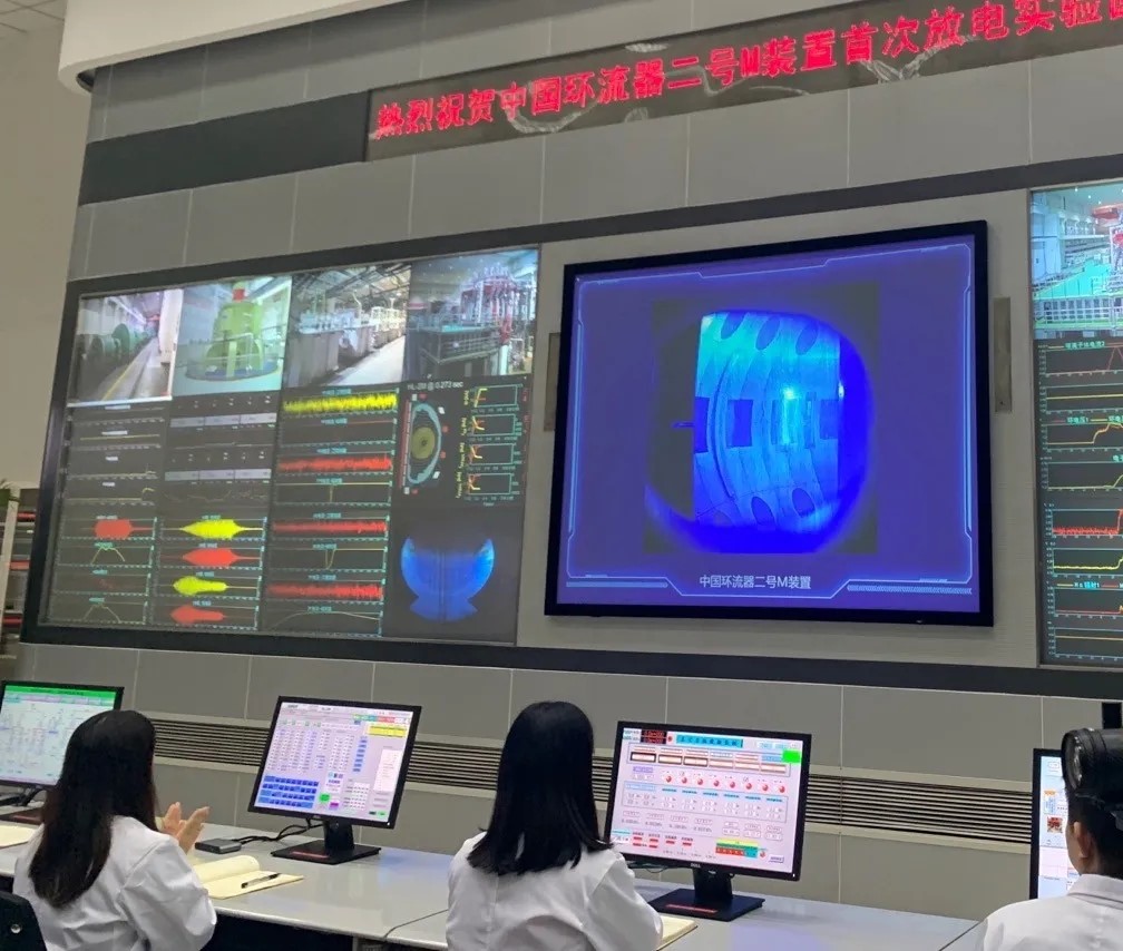 “1號(hào)電機(jī)、2號(hào)電機(jī)轉(zhuǎn)速1480轉(zhuǎn)每分鐘,系統(tǒng)準(zhǔn)備就緒;4號(hào)電機(jī)轉(zhuǎn)速400轉(zhuǎn)每分鐘,系統(tǒng)準(zhǔn)備就緒……中國環(huán)流器二號(hào)M裝置首次等離子體放電實(shí)驗(yàn)開始!”12月4日14時(shí)02分,位于四川成都的中核集團(tuán)核工業(yè)西南物理研究院內(nèi),中國環(huán)流器指揮 控制中心大屏幕上的藍(lán)色電光閃爍。