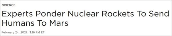 據(jù)美國(guó)全國(guó)公共廣播電臺(tái)(NPR)2月24日?qǐng)?bào)道,美國(guó)國(guó)家科學(xué)院核動(dòng)力研究小組主席、獨(dú)立航天顧問(wèn)羅杰·邁爾斯(Roger Myers)與他的同事近日發(fā)表了一份報(bào)告,稱核動(dòng)力火箭很可能是載人登陸火星項(xiàng)目的“核心技術(shù)”。