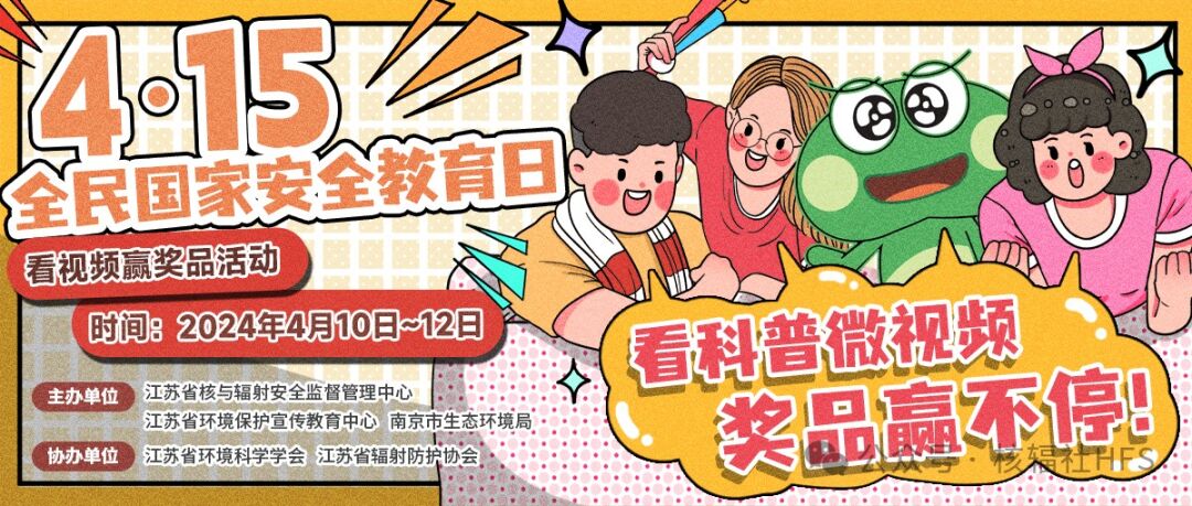今年4月15日是第九個(gè)全民國家安全教育日。4月10日至12日,核輻社推出了“看微視頻,答題贏獎(jiǎng)”的主題活動(dòng)。輻蛙社長繼續(xù)為大家準(zhǔn)備了豐厚的獎(jiǎng)品。保證讓您學(xué)得充實(shí),玩得盡興,禮品拿不停!