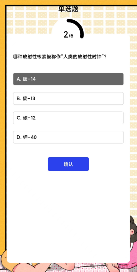 (2) 每次答題隨機(jī)分配6道題,答對全部6題就可參與抽獎(jiǎng),有機(jī)會(huì)贏得各類核輻社精美文創(chuàng)產(chǎn)品。