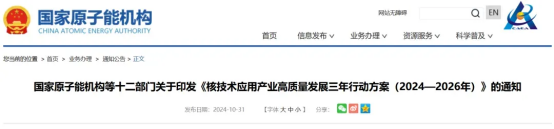 十二部門印發(fā)《核技術(shù)應(yīng)用產(chǎn)業(yè)高質(zhì)量發(fā)展三年行動方案(2024—2026年)》