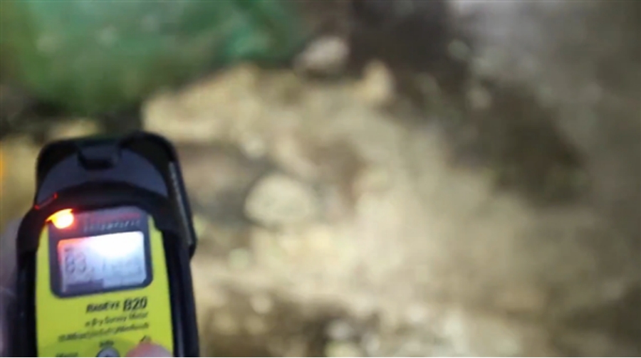 而當(dāng)小哥靠近當(dāng)年消防員的衣物時,蓋格計數(shù)器的鳴叫聲由急促變成了長鳴,數(shù)字也從1500微西弗每小時直線上升至“Overland!”爆表了!此時攝影機也開始受到干擾,小哥說話的聲音也變的含糊不清,太可怕了!