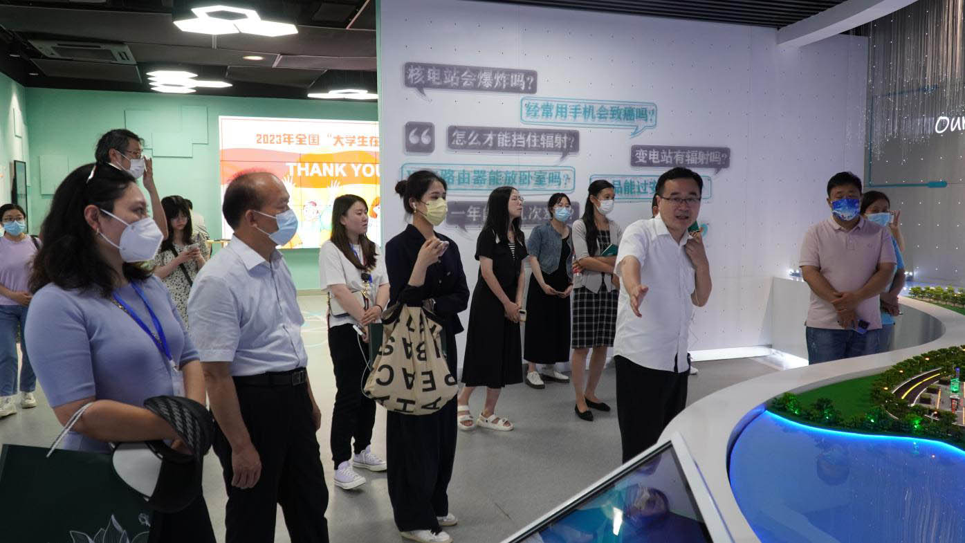 核輻社云科普館的“云”字,是一種“共享”的概念,整個展館主要分為“線下體驗”和“線上學習”兩大模塊,線下實體 展館營造學習氛圍、燃起學習興趣,有專業的講解員進行導覽,為參觀者打開一扇了解核與輻射知識的大門;而線上小程序則可以做到打破時間和空間上的壁壘,隨時隨地體驗瀏覽學習。