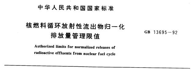 原文下載:核燃料循環(huán)放射性流出物歸一化排放量管理限值 GB/T 13695-1992