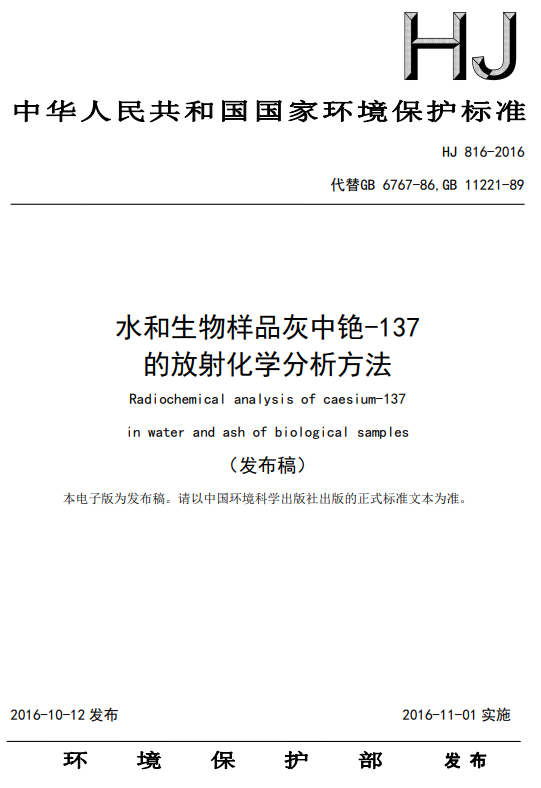 原文下載:水和生物樣品灰中銫-137的放射化學(xué)分析方法 HJ 816-2016