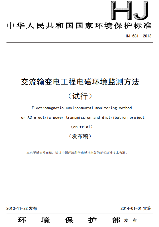原文下載:交流輸變電工程電磁環境監測方法(試行) HJ 681-2013