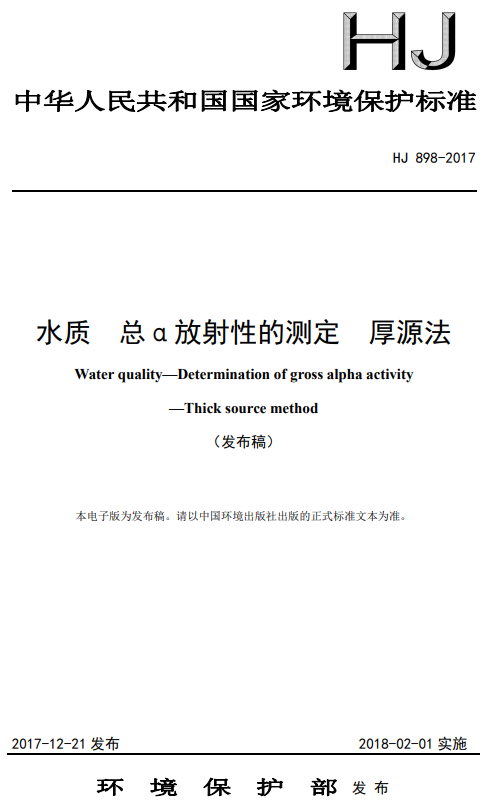 原文下載:水質 總α放射性的測定 厚源法 HJ 898-2017