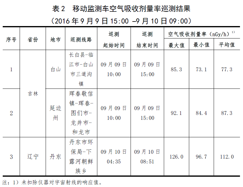 吉林和遼寧2個省份3輛移動監測車巡測的空氣吸收劑量率未見異常,處于當地本底漲落范圍內。