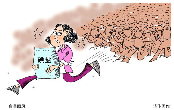 2011年3月17日在我國發生了一件非常奇怪的事,事件的經過大概如下: 2011年的3月11日在日本發生了一場震驚世界的大地震,截止到目前為止地震已造成了一萬多人遇難,一萬多人失蹤,給日本人民的生命和財產帶來了巨大的損失。同時,這次大地震也引起了全球人民的恐慌,而造成恐慌的源頭則是本次地震所導致的日本福島核電站的核泄露。大家都知道核輻射對人體的傷害是巨大的,也是無法治愈的,二戰中日本廣島和長崎的原子彈爆炸,前蘇聯切爾諾貝利核電站爆炸,其產生的核輻射都給當地及周邊地區帶來了空前的災難,所以,大家都恐慌是不無道理的。正是在這種背景之下,為防輻射和防止海鹽被污染,在我國大部分的城市和農村一夜之間出現了搶購鹽的場面,其情景非常的壯觀!一時間,好多商店都紛紛打出了“鹽已售完”的標識,出來了一鹽難求、高價售鹽的現象。